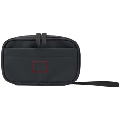 Realizzata in pelle PU riciclata certificata GRS con una fodera in RPET abbinata, questa custodia per accessori tecnologici è pensata per i viaggiatori, i lavoratori a distanza e gli appassionati di tecnologia. Compatta e facile da trasportare in uno zaino o nel bagaglio a mano, presenta uno scomparto principale con cerniera e pratiche caratteristiche organizzative, tra cui un passante elastico per la penna, due tasche in rete per auricolari e piccoli accessori, un divisorio rinforzato e più passanti elastici per contenere in modo sicuro cavi, unità USB e caricabatterie. L'esterno dispone di una tasca frontale con chiusura a strappo per un accesso rapido e di una maniglia in nastro per una maggiore praticità. Finitura in rivestimento idrorepellente per proteggere gli oggetti essenziali ovu