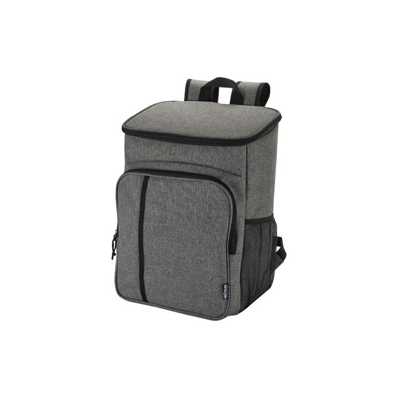 Lo zaino termico per picnic Tundra è realizzato con materiali riciclati certificati GRS e include un set di posate riutilizzabile per due persone in plastica ad uso alimentare. Lo scomparto principale ermetico, isolato con schiuma ad alta densità e fodera in PEVA termosaldata, mantiene gli alimenti e le bevande al fresco per ore. Per una maggiore praticità, include due tasche laterali in rete, una tasca frontale con cerniera per le stoviglie (due coltelli, due forchette, due tazze e due piatti) e un'ulteriore tasca con cerniera sulla parte superiore. Gli spallacci imbottiti e regolabili e la robusta maniglia in tessuto lo rendono comodo da trasportare. Questo zaino è l'accessorio ideale per i picnic, i pasti all'aperto, il campeggio o le gite in spiaggia. Capacità: 20 litri.