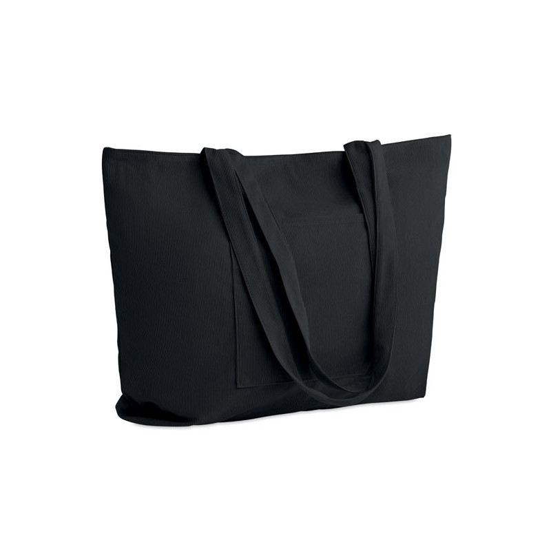 Borsa shopping/spiaggia grande in velluto a coste di poliestere con chiusura a zip superiore, tasca frontale aperta e tasca interna. 220 gr/m².