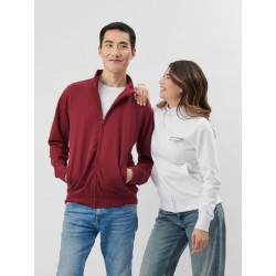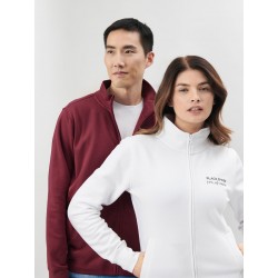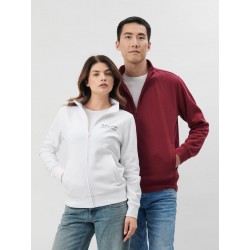 70% cotone, 30% poliestere. Felpa con maniche set-in e zip intera, tasche a filetto, orlo e polsini in costina e cuciture laterali. Dotata di etichetta strappabile e interno felpato. Lavorazione a 3 fili con strato esterno in 100% cotone, pensata per offrire ottima qualità di stampa, stabilità dimensionale e resistenza ai lavaggi.