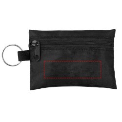Comoda borsa in poliestere con portachiavi che contiene 16 unità di materiale di pronto soccorso. Il kit contiene un paio di forbici (9 cm), 2 tamponi per la pulizia della pelle, 1 benda elastica (4 metri x 6 cm), 2 batuffoli di cotone (0,5 g), 3 spille di sicurezza (3,6 cm), 5 cerotti (45x19 mm) e 2 cotton fioc (8 cm). Ottima per i viaggi, festival, eventi e altre attività all'aperto. Presenta una grande area decorativa. Un kit di pronto soccorso è considerato un dispositivo medico ed è disciplinato dalla direttiva 93/42/CEE, in base all'uso previsto: "diagnosi, prevenzione, monitoraggio, trattamento o attenuazione delle malattie". Questo dispositivo medico appartiene alla CLASSE I, Is.