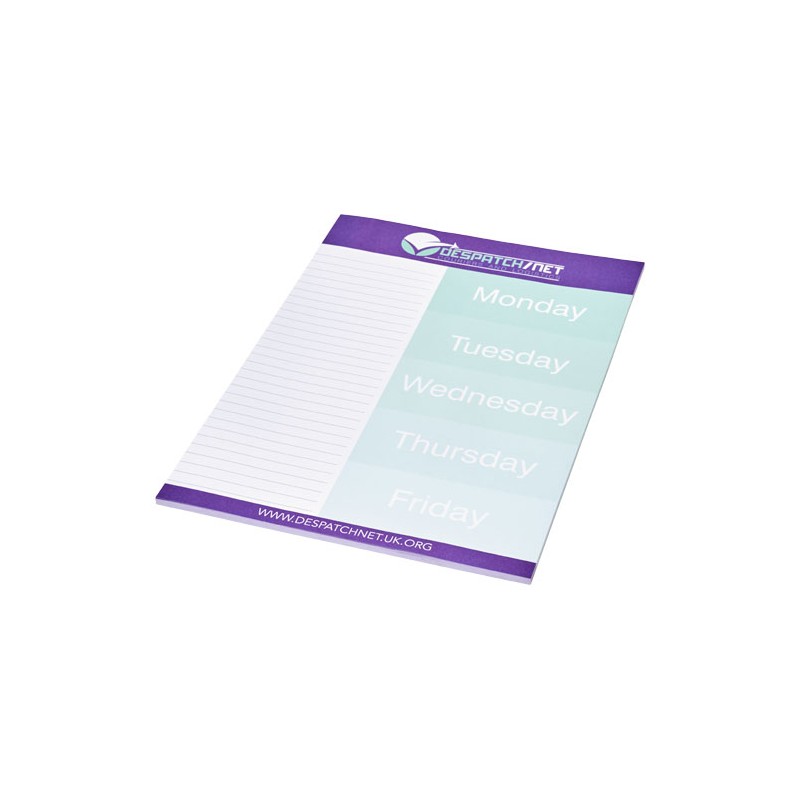 Blocco note Desk-Mate® di colore bianco e formato A4. La versione standard Include 50 fogli di carta da 80 g/m2. Stampa full color disponibile su ciascun foglio. Disponibile in 3 versioni (25/50/100 fogli).