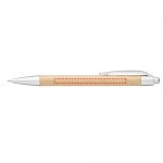 Penna a sfera ecologica con meccanismo a scatto, con serbatoio in carta riciclata e finiture in ABS argentato a spray. Il colore della carta riciclata può variare.