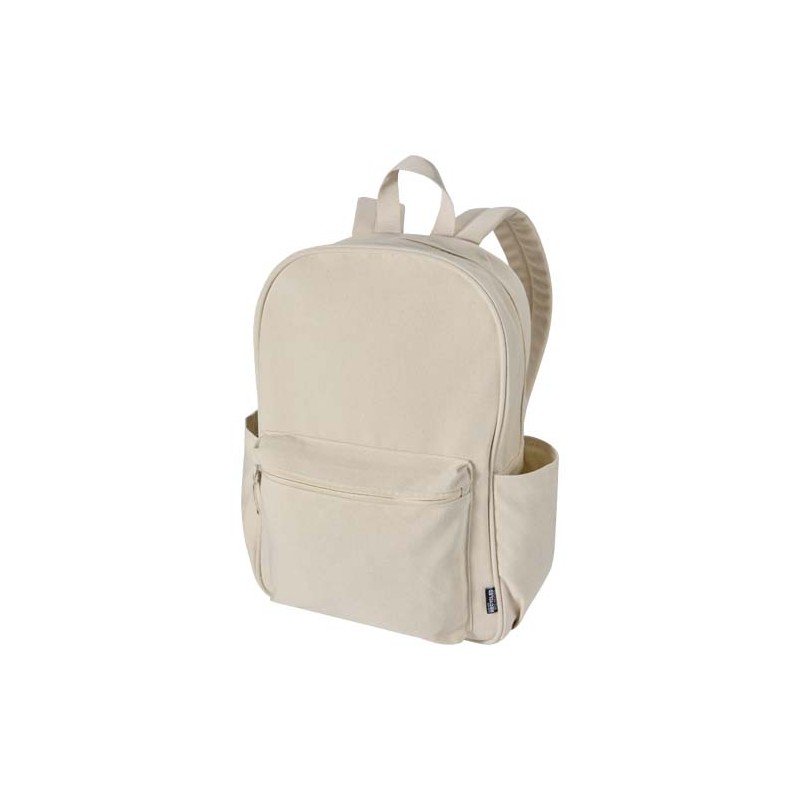 Realizzato in tela riciclata idrorepellente certificata GRS con fodera in PET riciclato in colore abbinato, lo zaino da città Recanvas combina stile e praticità quotidiana. Include uno scomparto imbottito per computer portatile da 15,6" con un'ulteriore custodia imbottita, una tasca frontale con zip, due tasche laterali, uno schienale in rete traspirante e spallacci regolabili per il massimo comfort. Con una capacità di 16 litri, è ideale per gli spostamenti, lo studio o l'uso quotidiano.